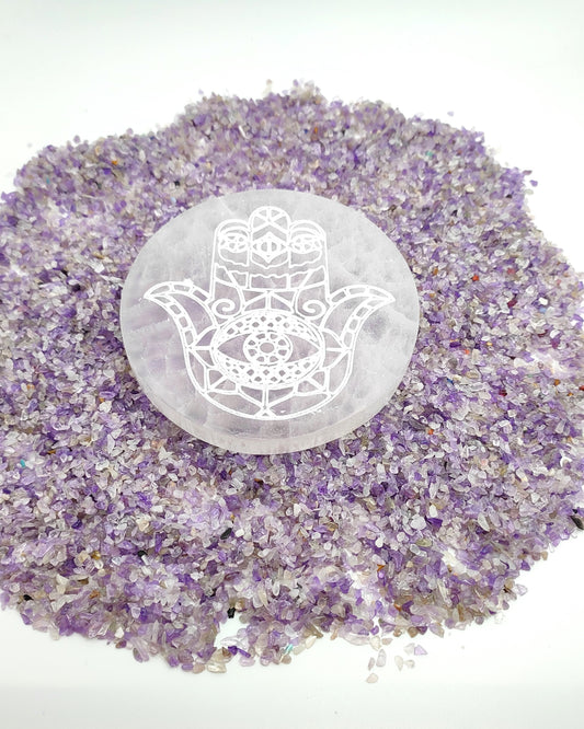 Piastra di Ricarica Mano di Fatima in Selenite