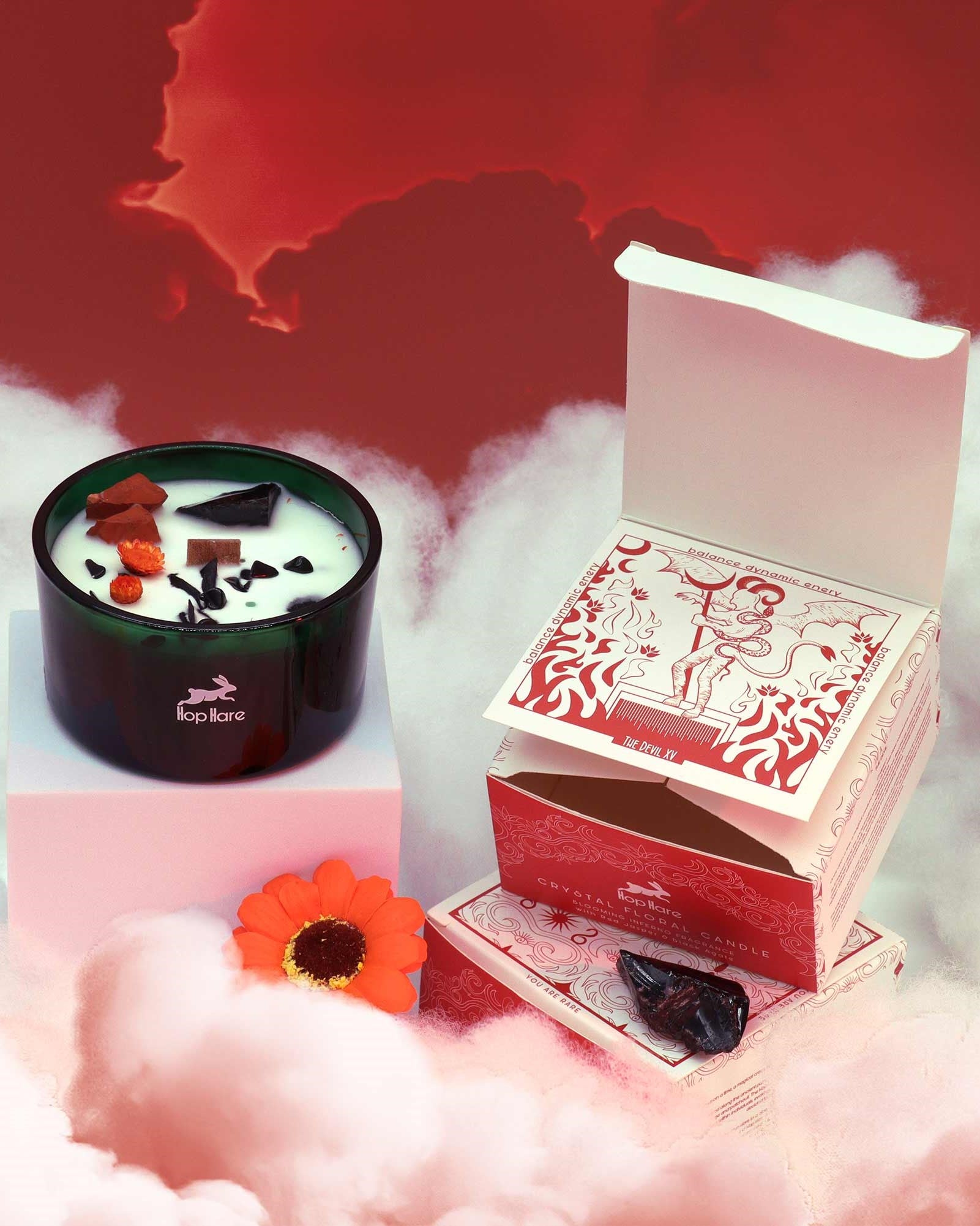 C'era una volta, una creatura magica conosciuta come Hop Hare (tradotto dall'inglese lepre saltellante) vagava nel lato più oscuro di una terra mistica. Mentre saltellava lungo antichi sentieri, una deliziosa fragranza riempi l'aria, portando con sé il profumo d'arancia dolce e del patchouli.
