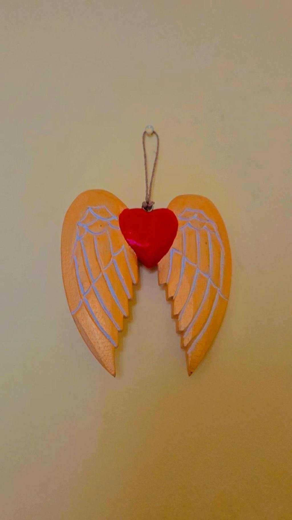 Realizzate in legno con cura artigianale, queste ali racchiudono nel cuore rosso tutta la passione delle festività e la dolcezza dei ricordi più cari.