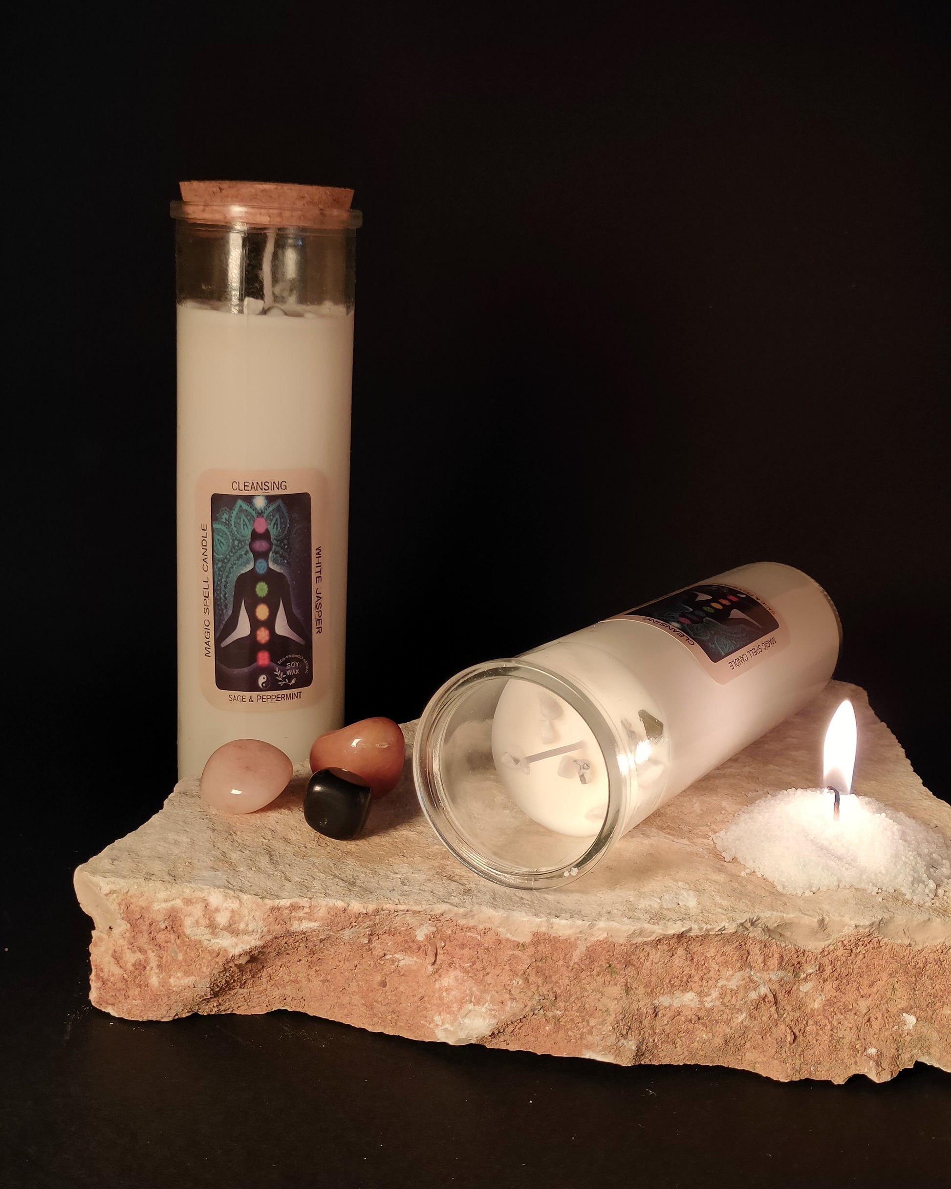 Le candele Incantesimo, sono potenziate dalle gemme magiche, e ogni gemma ha uno scopo diverso nell'incantesimo. La fiamma ha il potere di cambiare qualsiasi cosa. Può trasformare in cenere una lettera d'amore, aiutare a cucinare il cibo o creare un incantevole sfarfallio romantico per catturare un cuore. Tutta questa energia che la candela canalizza, consente dei cambiamenti e che desideri si esaudiscano.